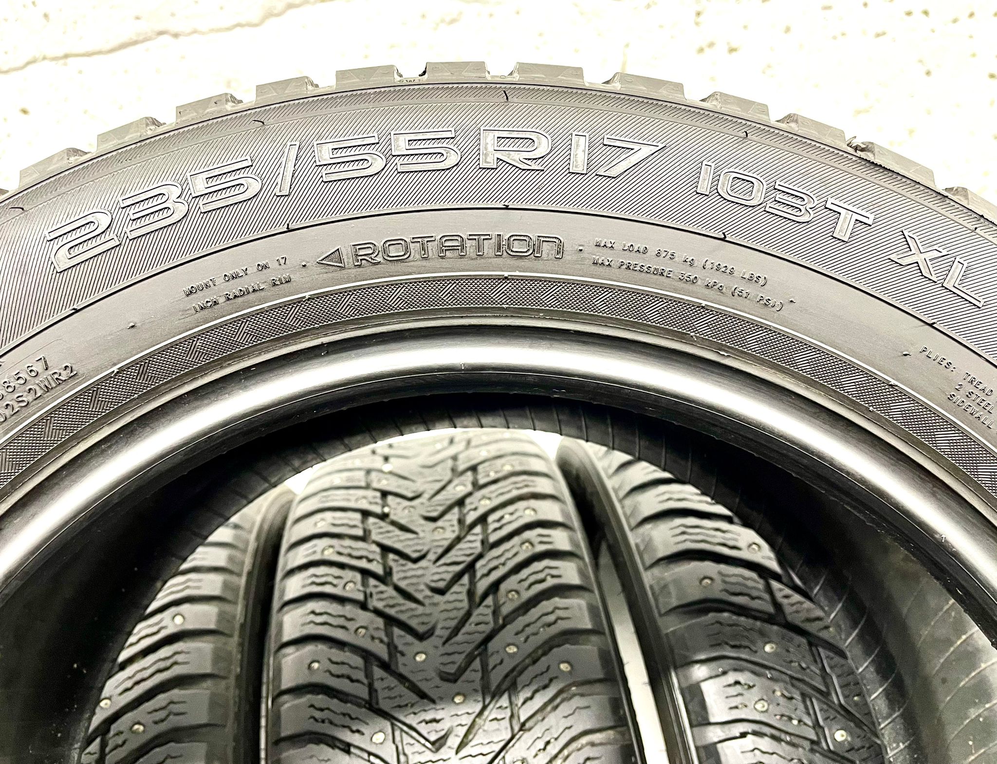 Riepas atbilst Ministru kabineta noteikumu prasībām – tām ir kalna un sniegpārsliņas marķējums. Cena norādīta par komplektu. Extra Load.