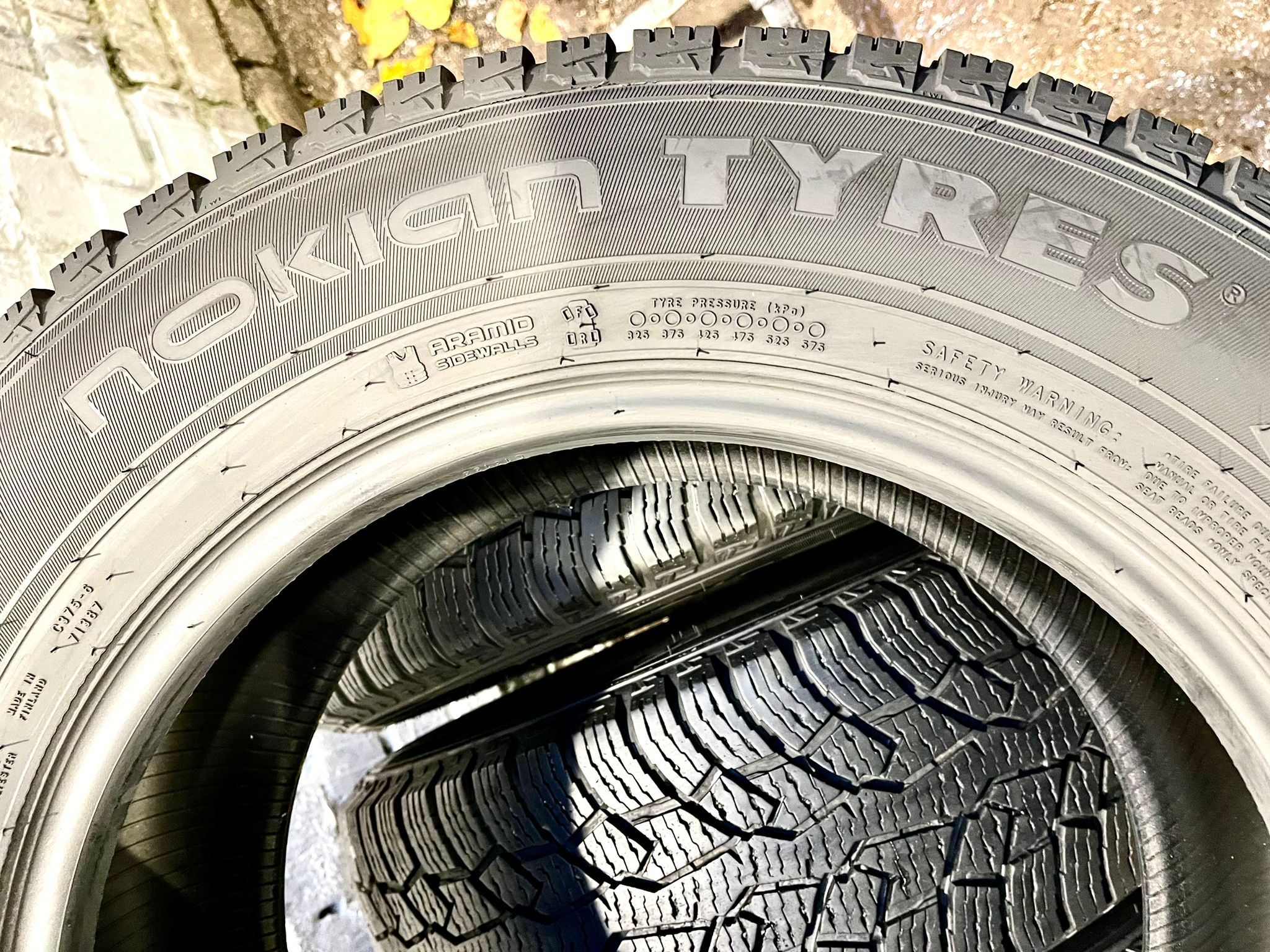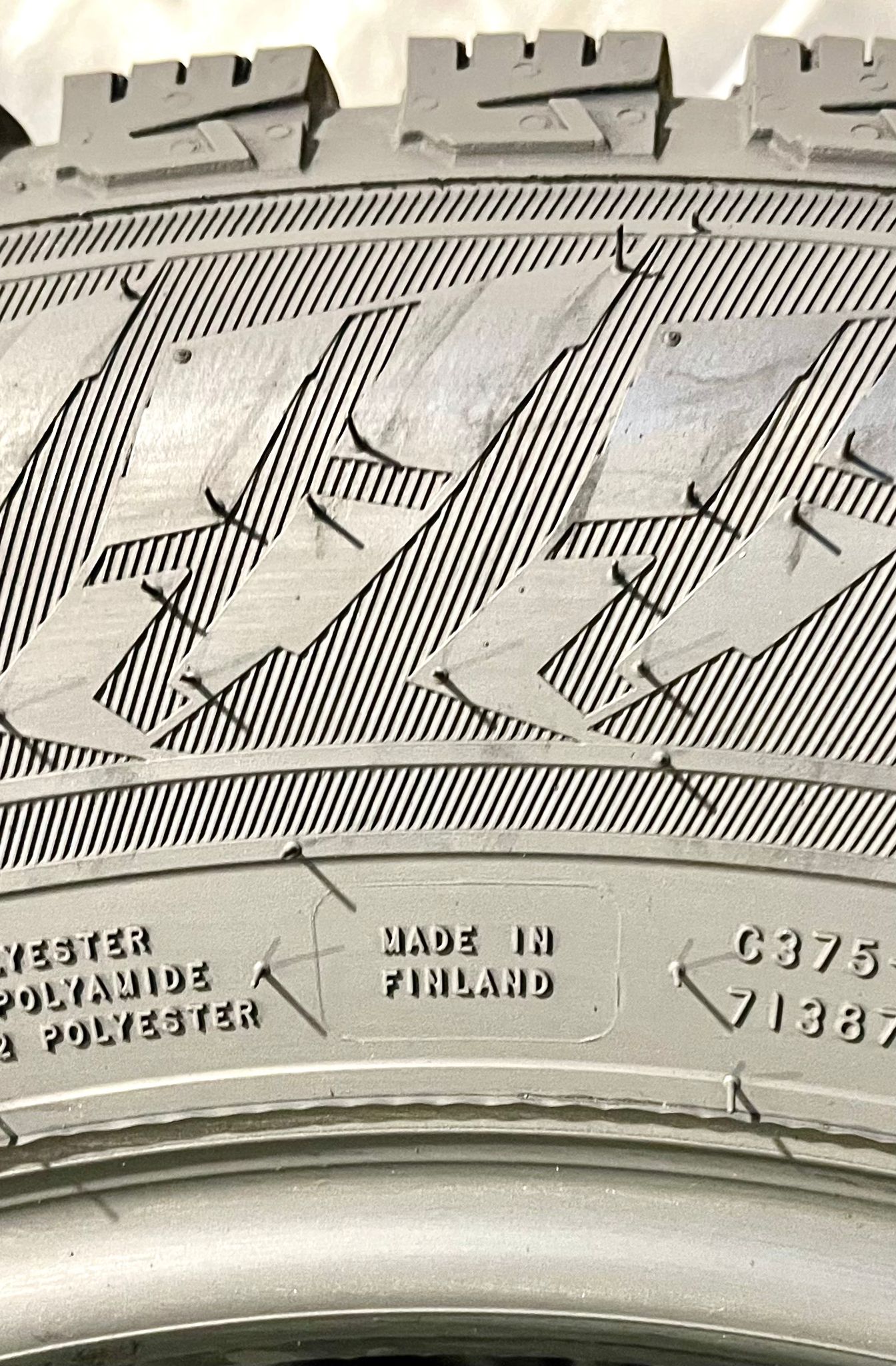Riepas atbilst Ministru kabineta noteikumu prasībām – tām ir kalna un sniegpārsliņas marķējums. Cena norādīta par komplektu. 2gb.-8,2mm un 2gb.- 7,5mm. DOT-5123. Made in Finland.