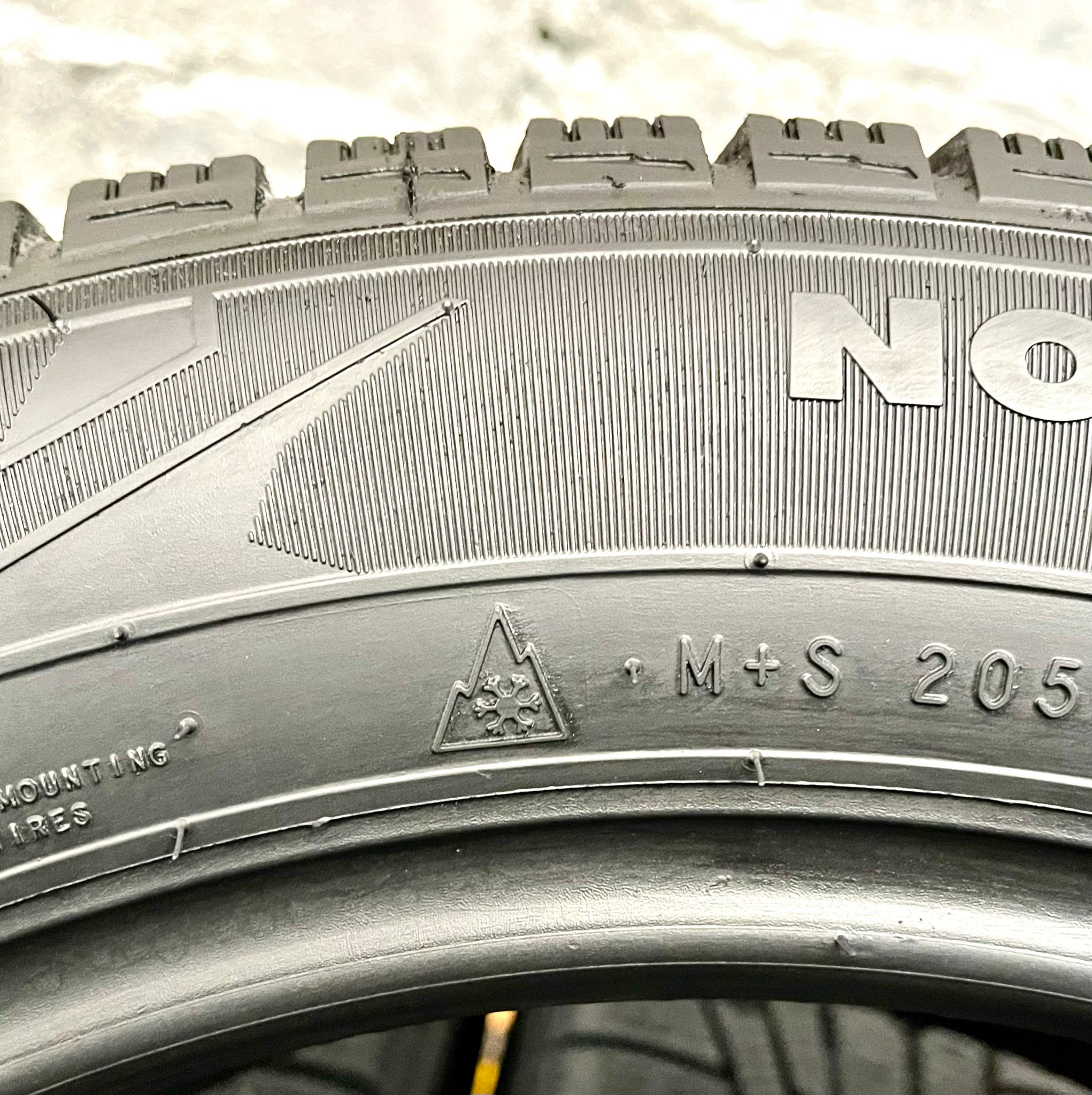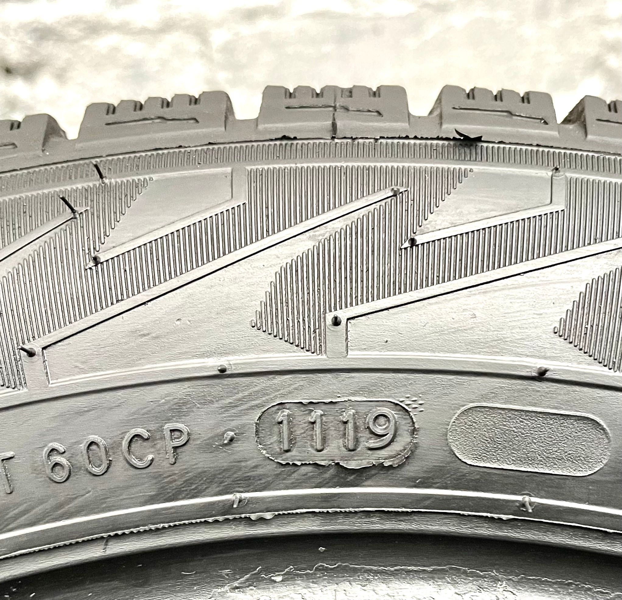Riepas atbilst Ministru kabineta noteikumu prasībām – tām ir kalna un sniegpārsliņas marķējums. Cena norādīta par komplektu. DOT-1119.
