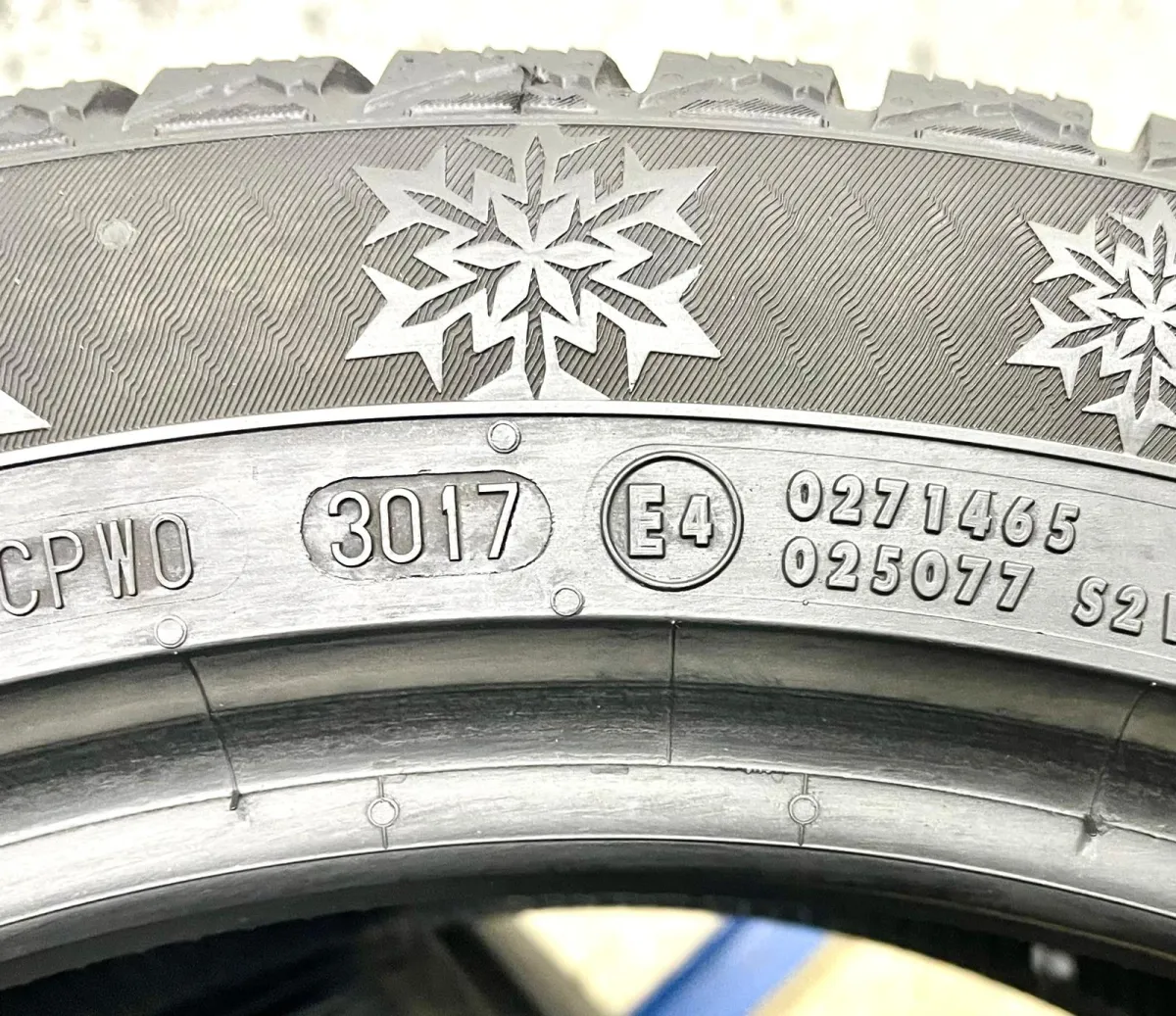 Riepas atbilst Ministru kabineta noteikumu prasībām – tām ir kalna un sniegpārsliņas marķējums. Cena norādīta par 2gb. Extra Load. 5,7mm. DOT-3017. Made in Germany.