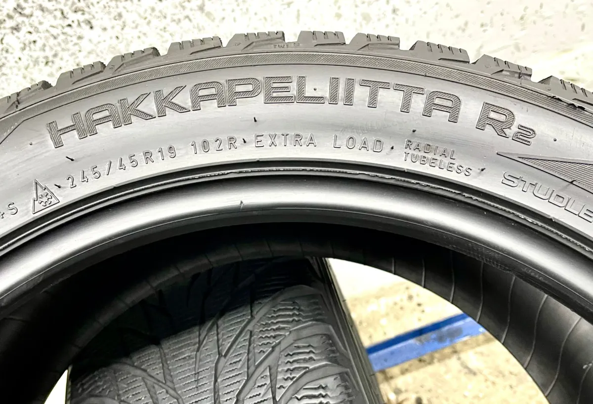Riepas atbilst Ministru kabineta noteikumu prasībām – tām ir kalna un sniegpārsliņas marķējums. Cena norādīta par 2gb. Extra Load. 5,6mm. Made in Finland. DOT-4217.